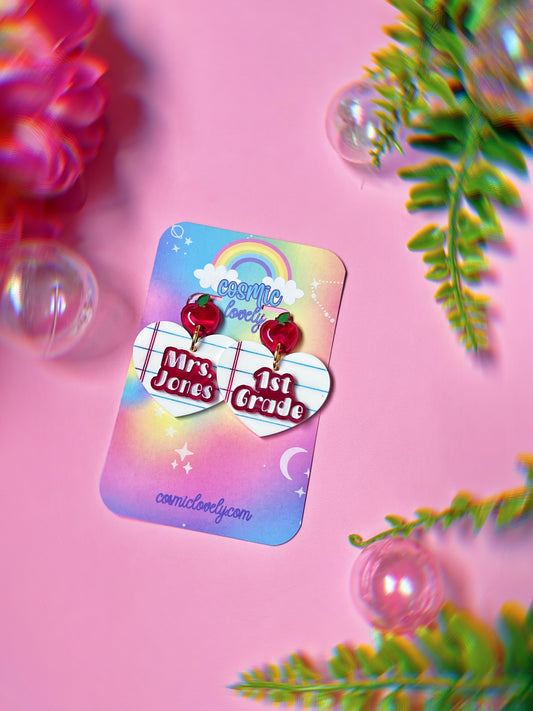 CUSTOM Teacher School Paper Name or Grade Earrings