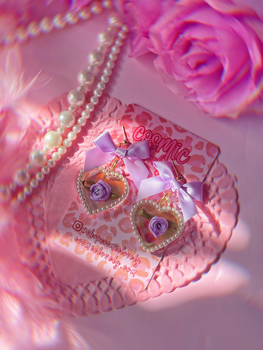 Lavender Bow Coquette Heart Earrings