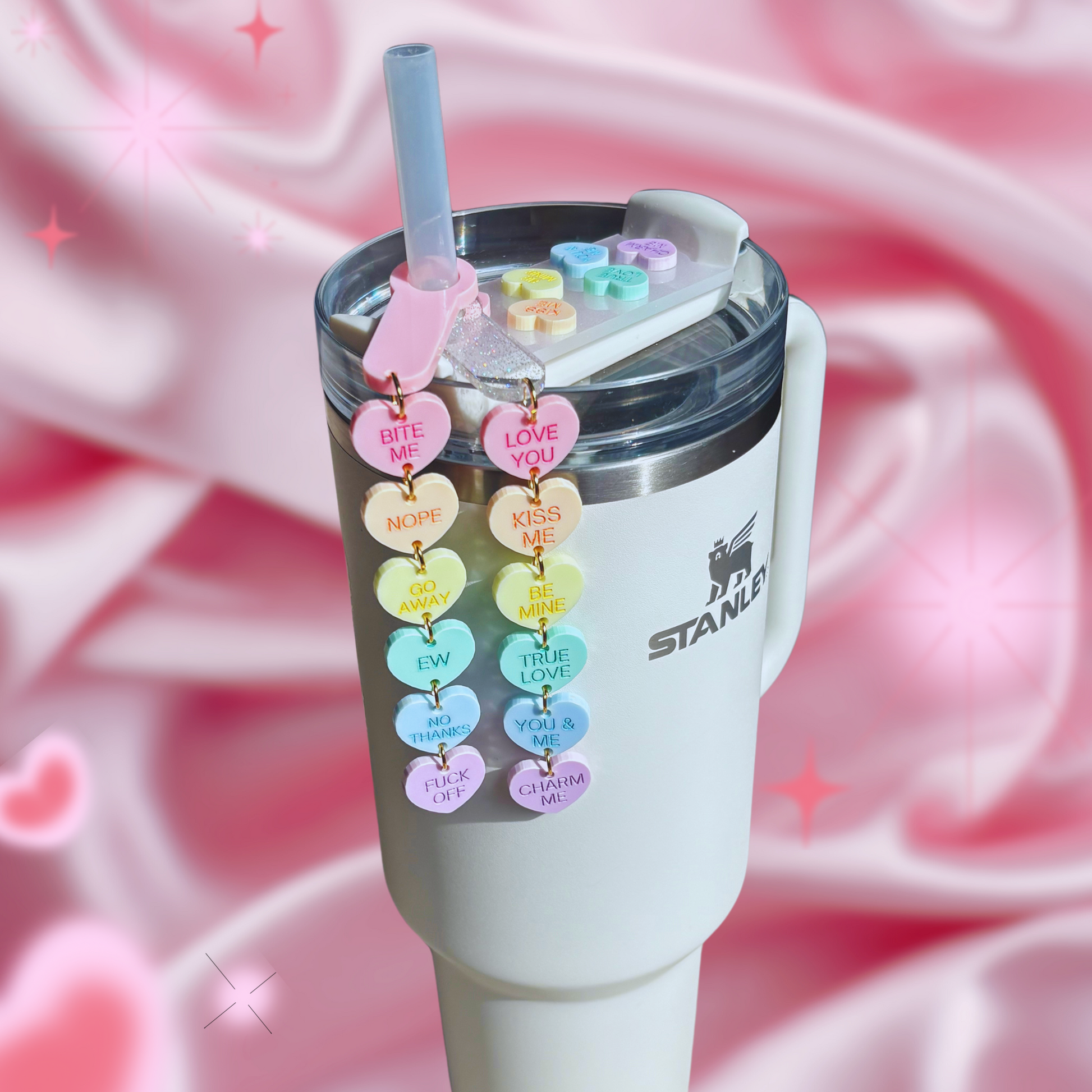 Anti-Valentines Love Day Candy Hearts Tumbler Cup Straw Charms 40oz | 30oz | 20 oz | 14oz Tumbler Cup Accessories | 40oz Tumbler Accessories
