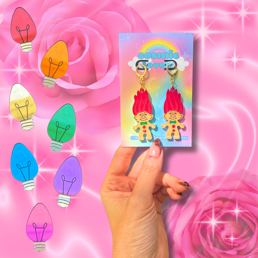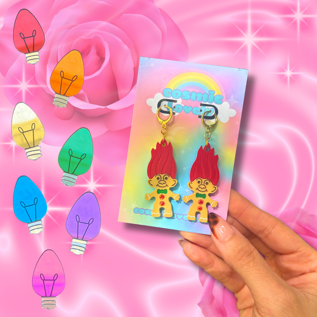 This listing is for ONE Pair of Jolly Gingerbread Holiday Christmas Troll Earrings. Leverbacks are hypoallergenic. Earrings are approximately 2"